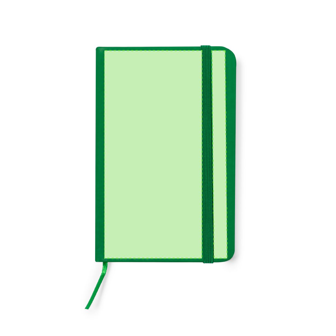 Ce bloc-notes au format carnet A6 présente une couverture en similicuir colorée, renfermant 100 feuilles lignées avec un cordon marque-page et un élastique de fermeture. Il est disponible en 7 coloris différents. Dimensions ; 9,3 x 14,3 x 1,5 cm.