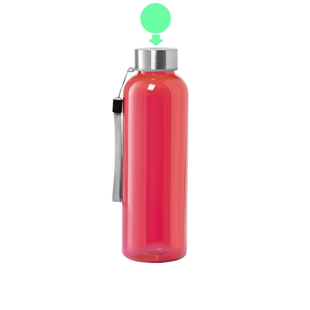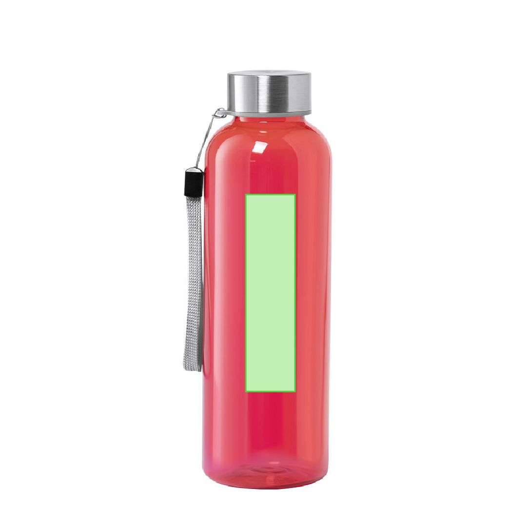 Avec une capacité de 600 ml, cette bouteille / gourde (non isotherme) est fabriquée en plastique issu de bouteilles d'eau recyclées (RPET sans BPA). Le bouchon à vis est en acier inoxydable. Il est disponible en 9 coloris différents. Dimensions ; 6,5 x 21 cm.