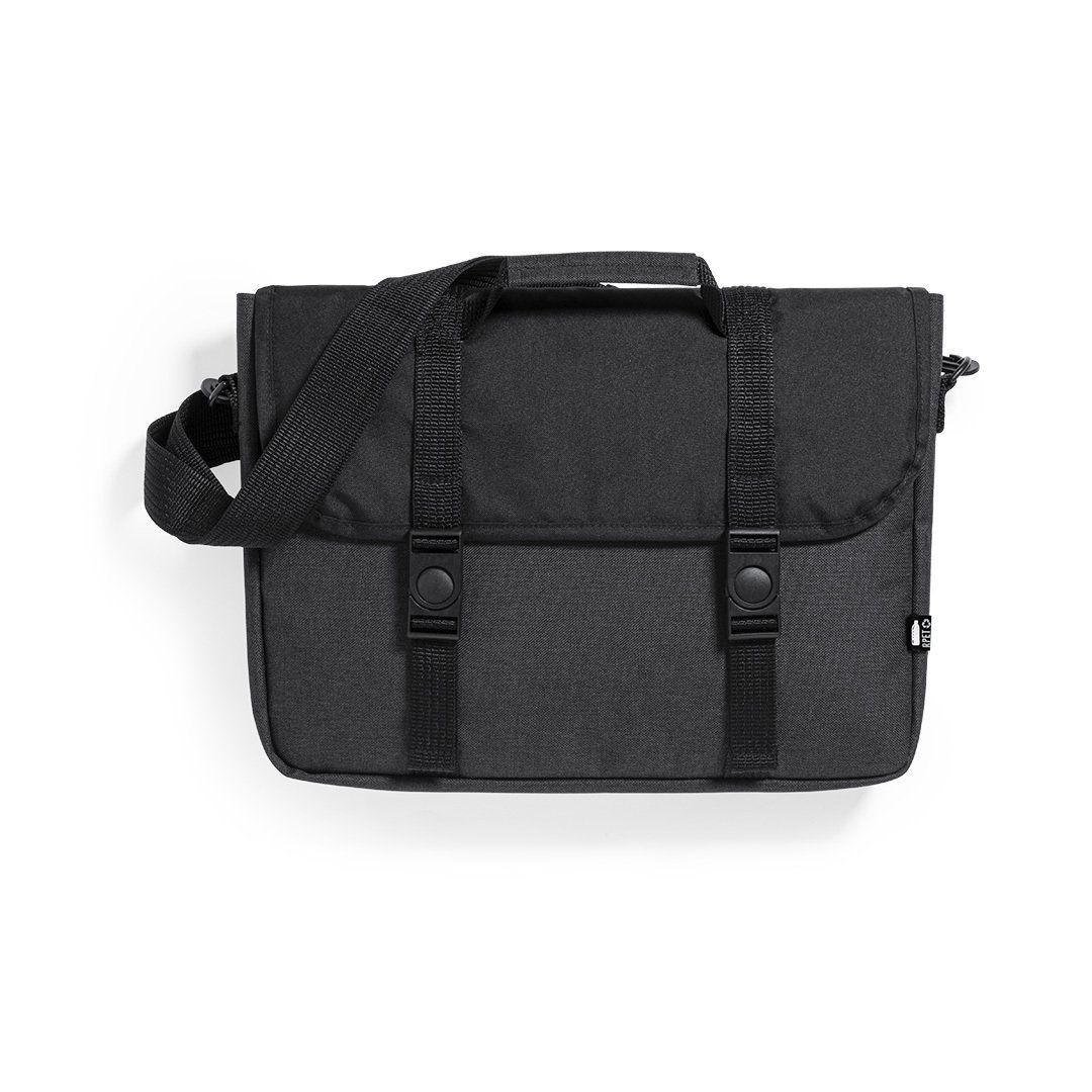 Ce porte-documents classique est fabriqué en plastique recyclé PP avec un rabat à fermeture avec deux pressions. Il est disponible en 3 coloris différents. Dimensions ; 38 x 27 x 6 cm.
