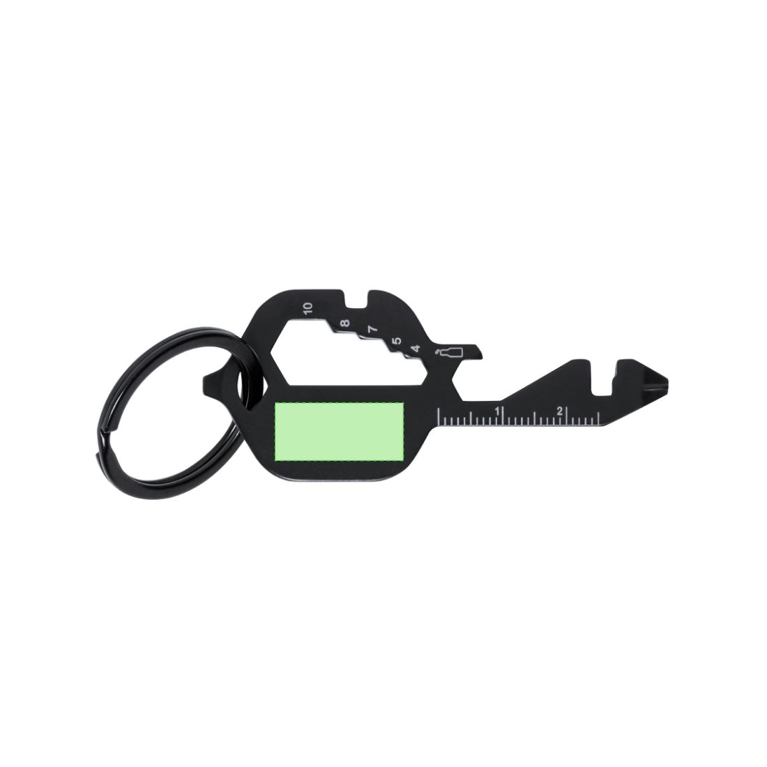 Un porte-clés en acier inoxydable multi-fonctions : tournevis plat, clé à écrous hexagonaux, mini règle, décapsuleur. Il est disponible en coloris unique. Dimensions ; 3 x 7,2 x 0,2 cm.