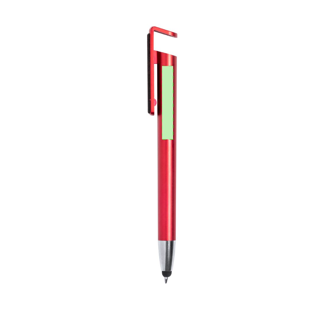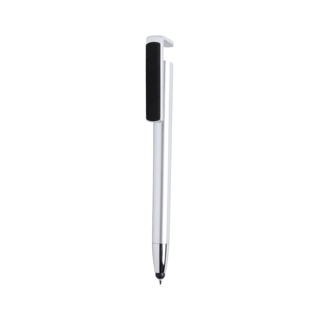 Ce stylo bille est multi-usages : support de téléphone dans l'encoche de son clip, embout tactile en rétractant la mine, surface nettoyante sur le clip. Il est disponible en 8 coloris différents. L'encre est noire. Dimensions ; 14,6 x 1,1 cm.