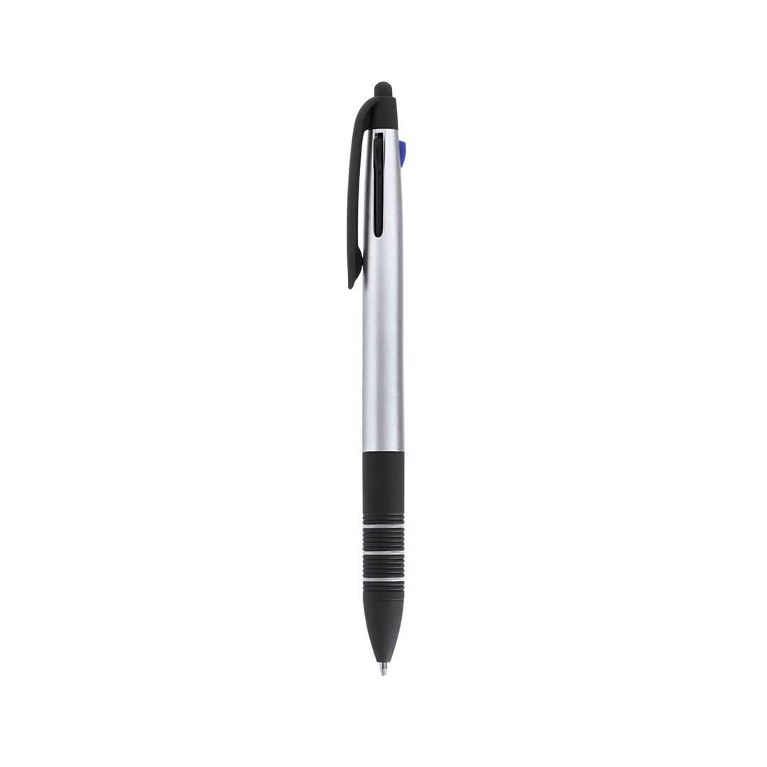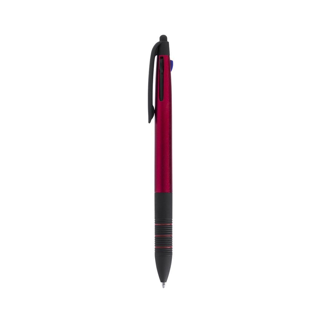 Un stylo-stilet trois couleurs d'encre aux finitions frosty. Il est disponible en 5 coloris différents. Les trois cartouches à encre sont : bleue, noire et rouge. Dimensions ; 14,8 x 1,1 cm.