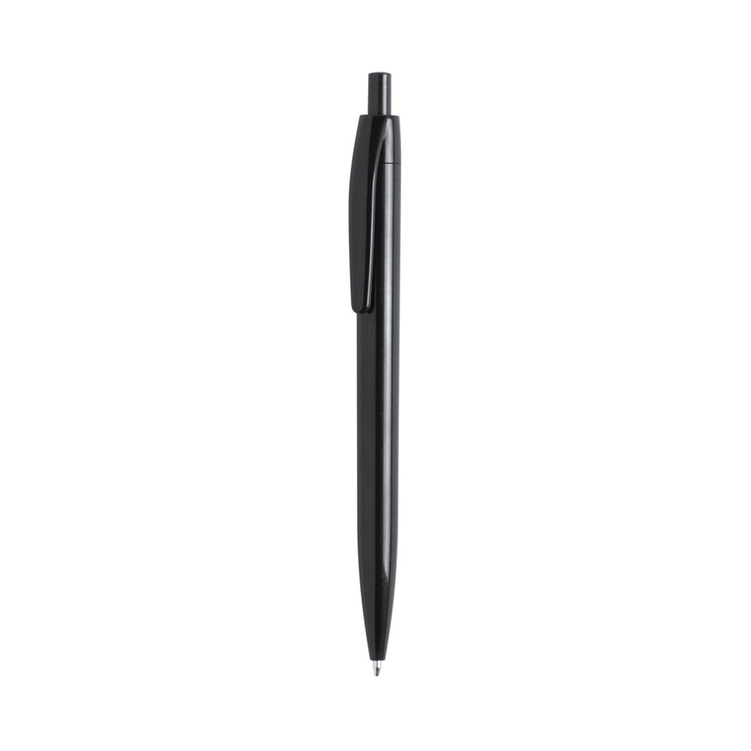 Ce stylo au design épuré et monochrome à effet de brillance est en plastique PPA. Il est disponible en 11 coloris différents. L'encre est bleue. Dimensions ; 13,8 x 1 cm.