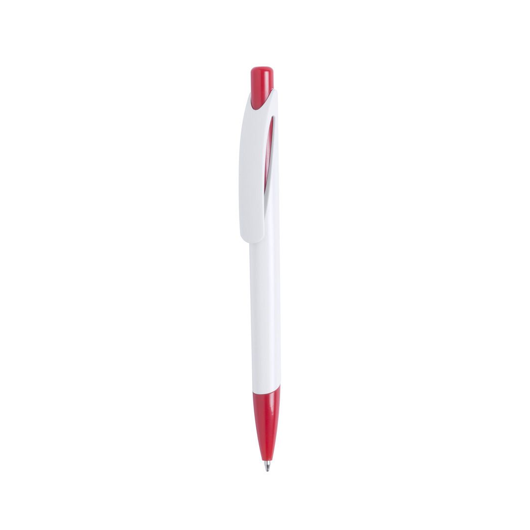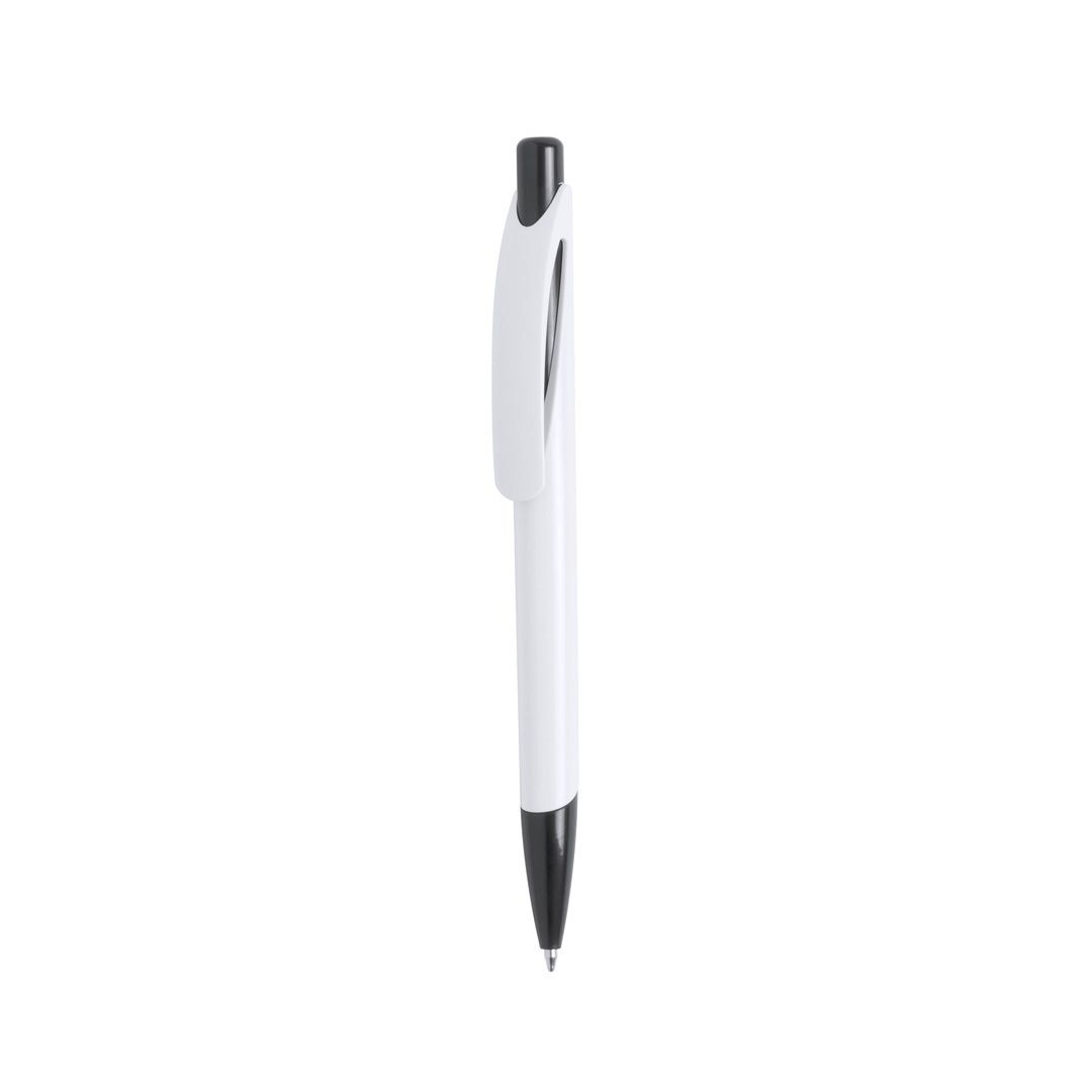 Stylo à bille bicolore en plastique avec corps blanc, bouton-poussoir et pointe colorés. Il est disponible en 8 coloris différents. L'encre est bleue. Dimensions ; 14 x 1,1 cm.