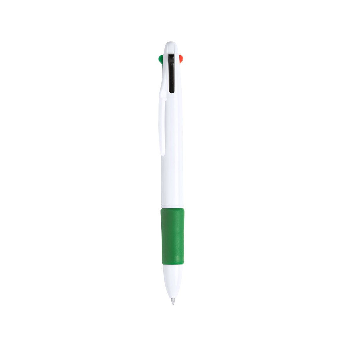 Le stylo classique à quatre cartouches rétractables à bille 4 couleurs d'encre (noire, bleue, rouge et verte). Corps blanc en plastique PPA solide. Il est disponible en 6 coloris d'attributs différents. Dimensions ; 14,1 x 1,3 cm.