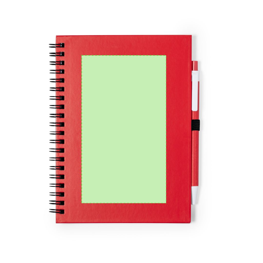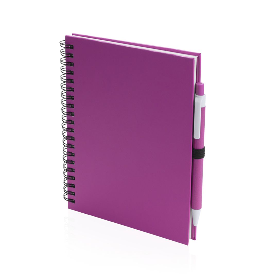Ce bloc-notes bicolore à cerceaux de format carnet proche A5 est en carton rigide recyclé avec son stylo assorti. Contient 70 feuilles pleines. Il est disponible en 8 coloris différents. Dimensions ; 15 x 18,2 x 1,9 cm.
