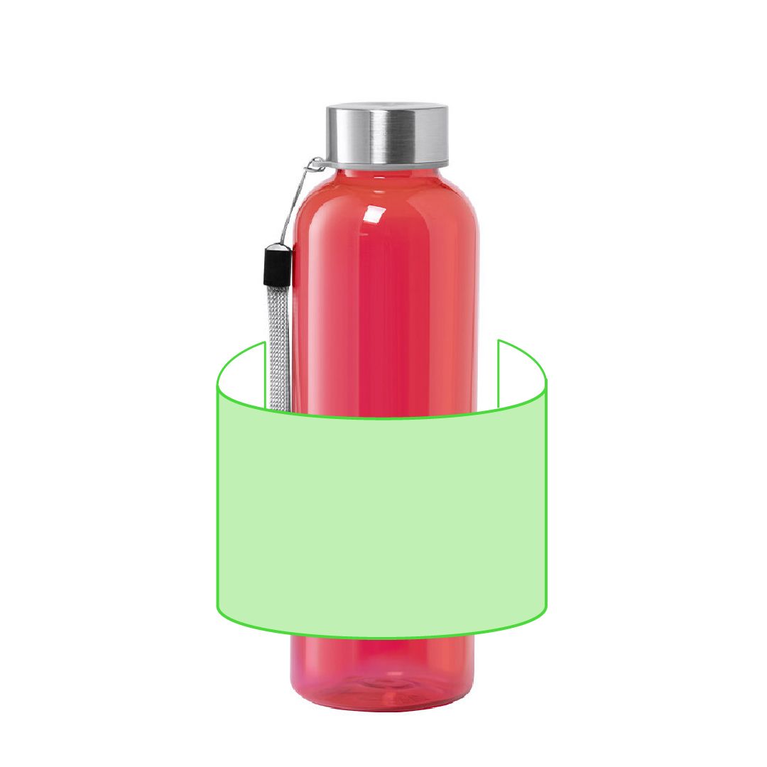 Avec une capacité de 600 ml, cette bouteille / gourde (non isotherme) est fabriquée en plastique issu de bouteilles d'eau recyclées (RPET sans BPA). Le bouchon à vis est en acier inoxydable. Il est disponible en 9 coloris différents. Dimensions ; 6,5 x 21 cm.