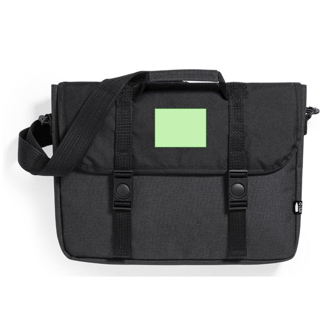 Ce porte-documents classique est fabriqué en plastique recyclé PP avec un rabat à fermeture avec deux pressions. Il est disponible en 3 coloris différents. Dimensions ; 38 x 27 x 6 cm.