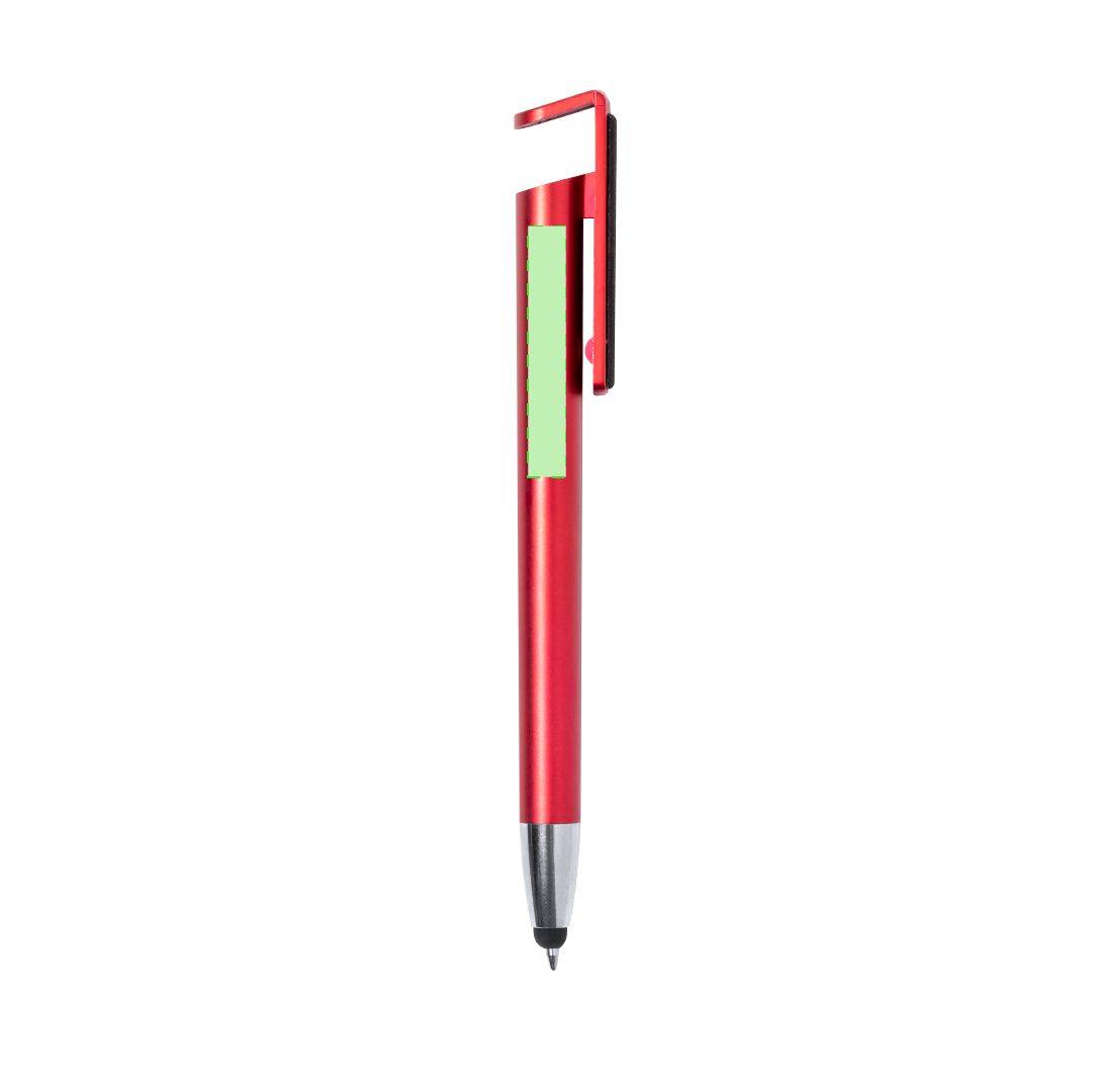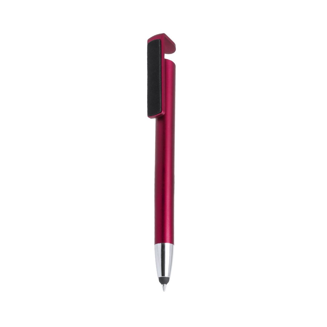 Ce stylo bille est multi-usages : support de téléphone dans l'encoche de son clip, embout tactile en rétractant la mine, surface nettoyante sur le clip. Il est disponible en 8 coloris différents. L'encre est noire. Dimensions ; 14,6 x 1,1 cm.