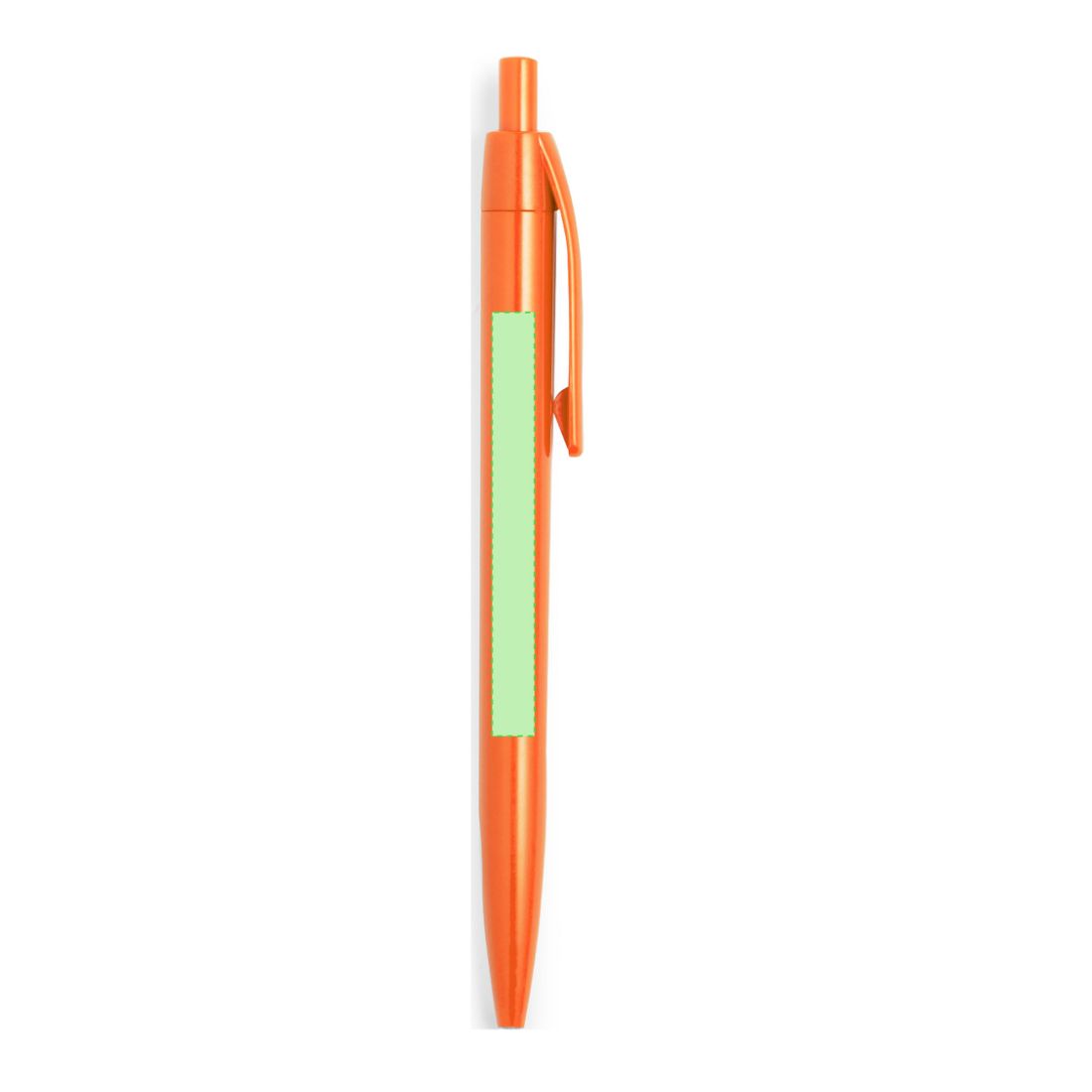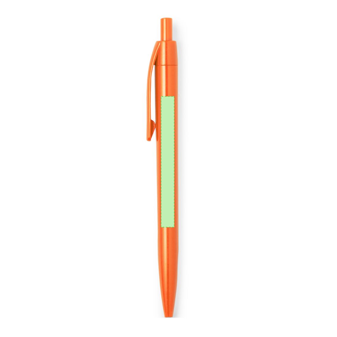 Ce stylo au design épuré et monochrome à effet de brillance est en plastique PPA. Il est disponible en 11 coloris différents. L'encre est bleue. Dimensions ; 13,8 x 1 cm.
