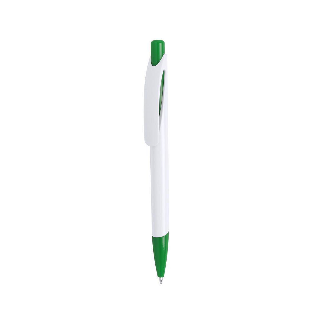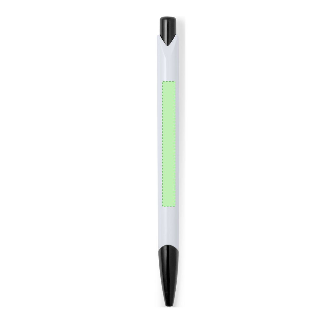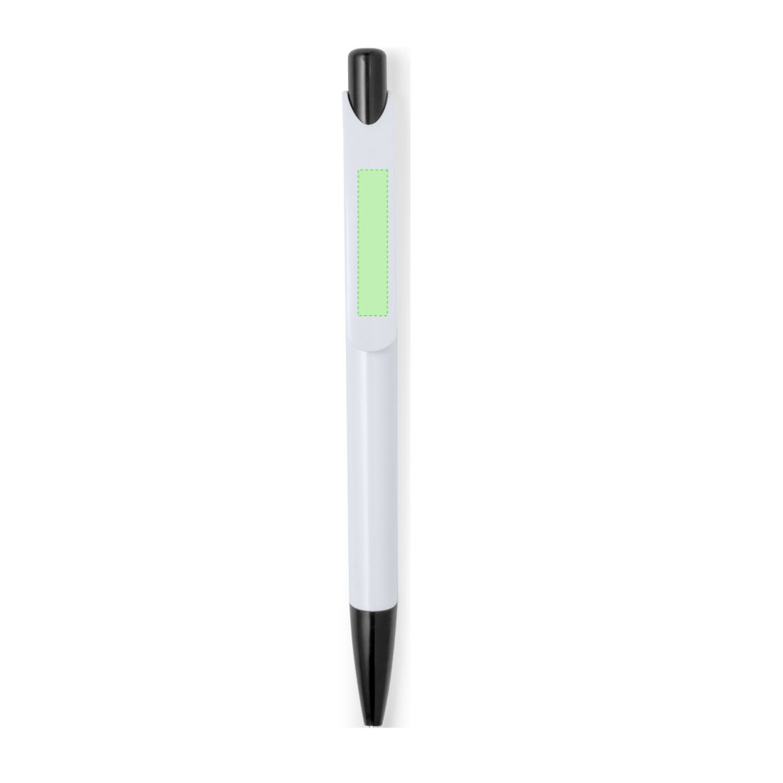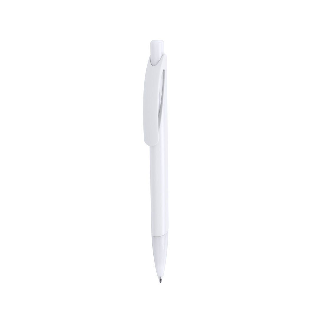 Stylo à bille bicolore en plastique avec corps blanc, bouton-poussoir et pointe colorés. Il est disponible en 8 coloris différents. L'encre est bleue. Dimensions ; 14 x 1,1 cm.