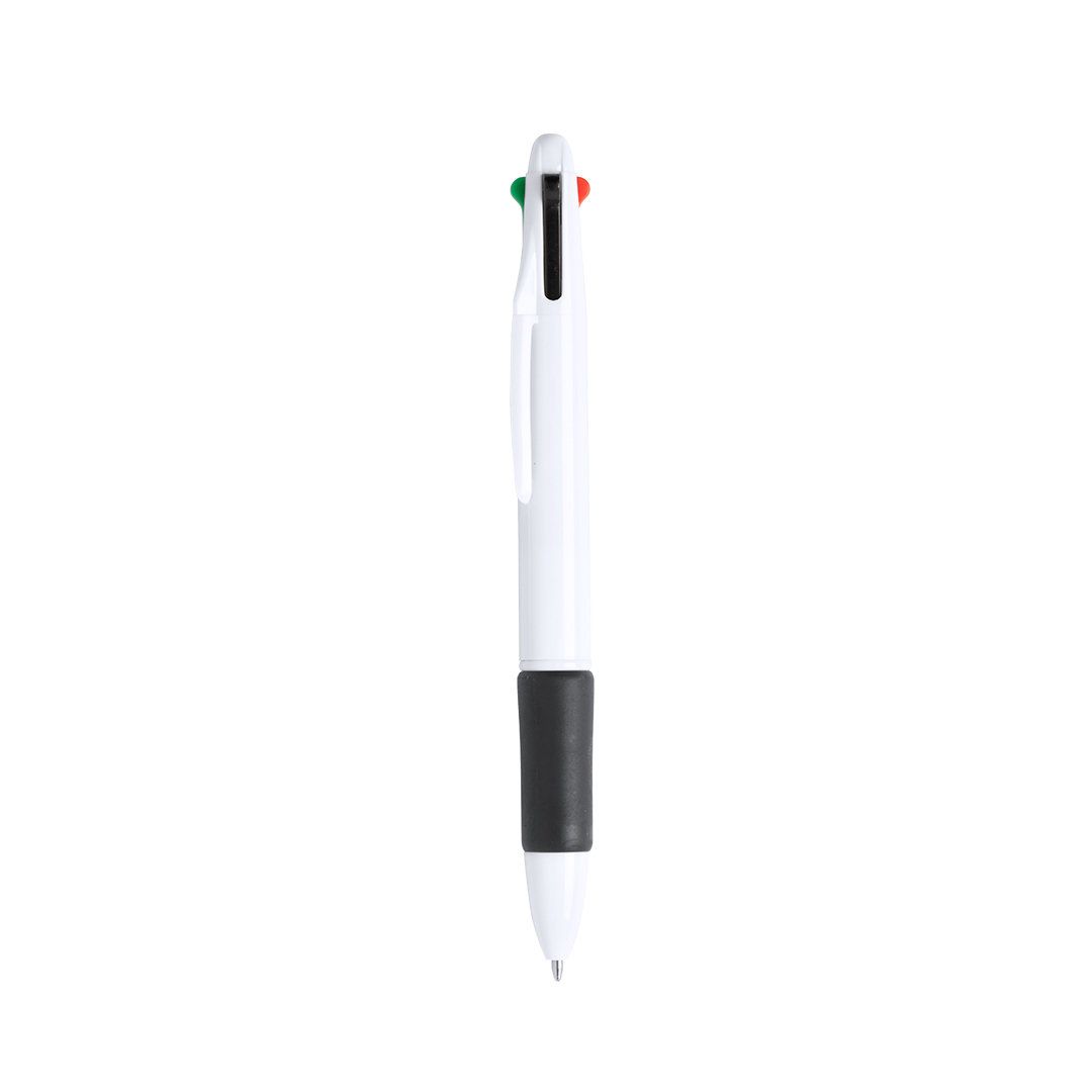 Le stylo classique à quatre cartouches rétractables à bille 4 couleurs d'encre (noire, bleue, rouge et verte). Corps blanc en plastique PPA solide. Il est disponible en 6 coloris d'attributs différents. Dimensions ; 14,1 x 1,3 cm.