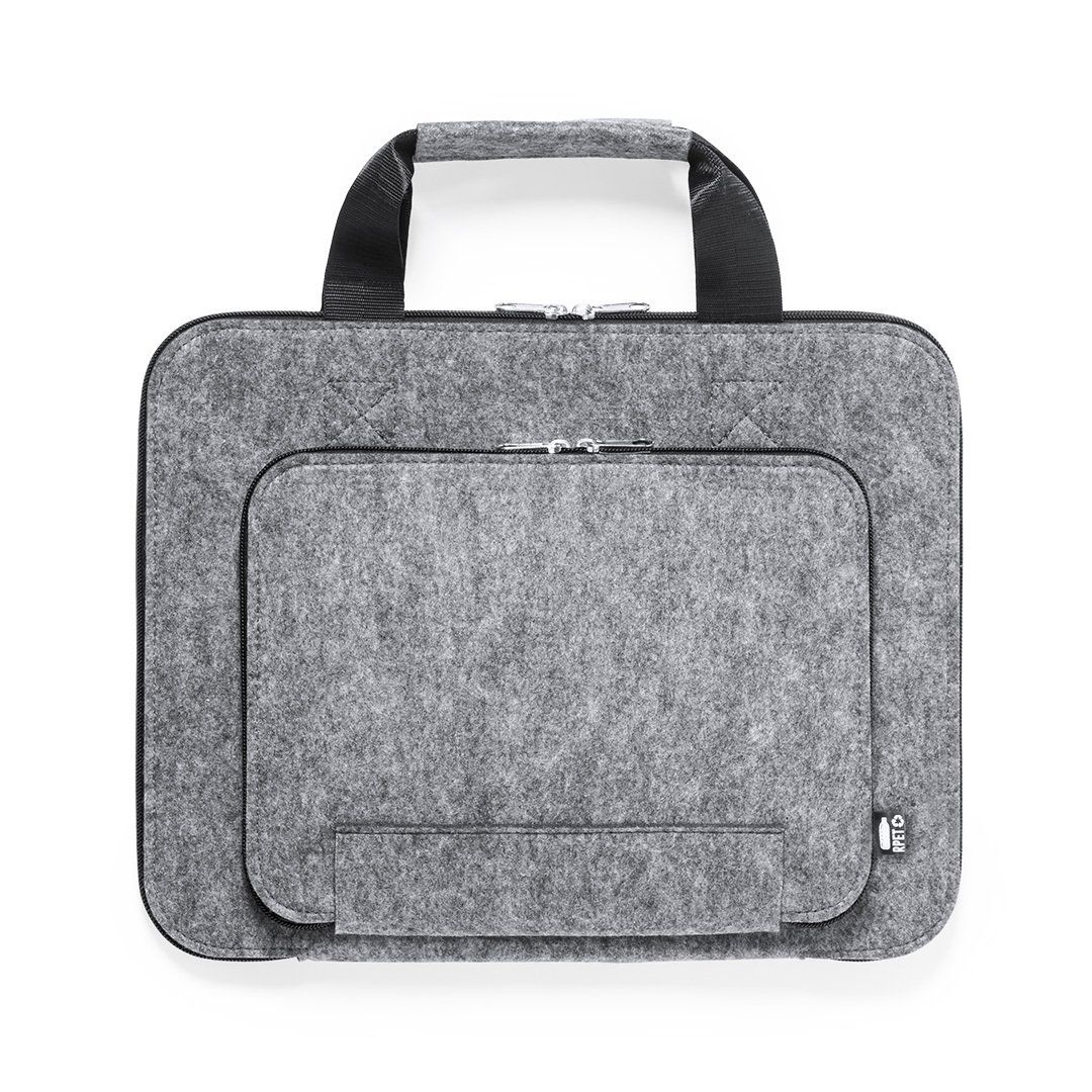 Cette sacoche porte-documents appartient à notre gamme écoresponsable, il est conçu à partir de feutrine recyclé (RPET). Plusieurs poches à fermetures éclairs et poignées. Il est disponible en coloris unique. Dimensions ; 37 x 29 x 3 cm.
